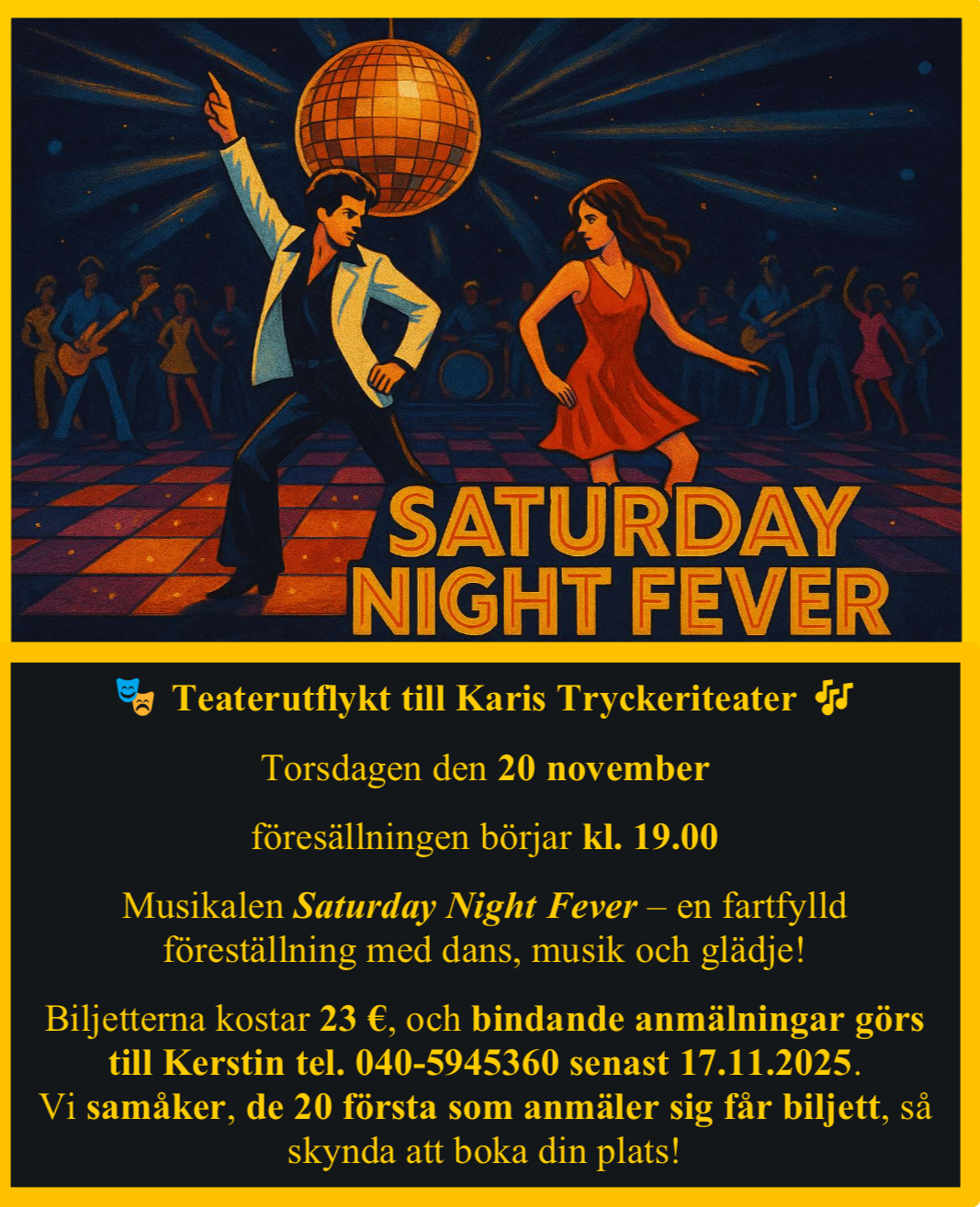 21.9. " Minnenas kväll med Herreys", anmäl till Sonja Petrell