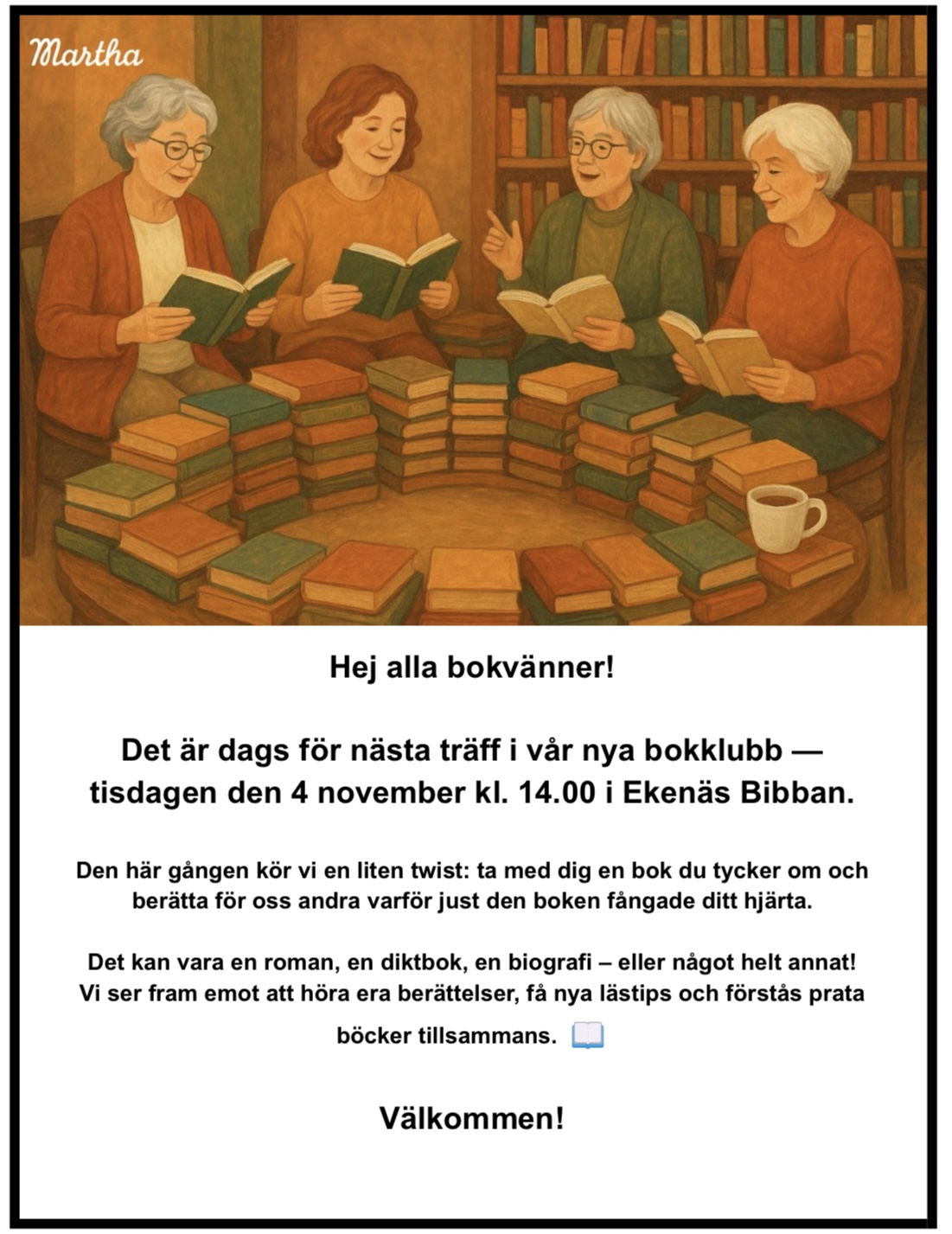 4 november Bokklubben träffas i Bibban kl. 14